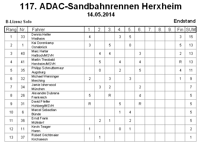 Ergebnisse Sandbahnrennen Herxheim Herxheim_HF2015_Endstand_WC_Final1_I-Solo Herxheim_HF2015_Endstand_I-Seiten Herxheim_HF2015_Endstand_B-Solo Herxheim_HF2015_Endstand_B-Seiten Manuel Wüst2015-05-14T20:21:33+01:00 FacebookXWhatsAppPinterestE-Mail Ähnliche Beiträge Speedway Paar Cup 126. internationales Sandbahnrennen Herxheim Wichtige Infos zum 126. Sandbahnrennen Herxheim am 28./29.Mai Helferbesprechung Sandbahnrennen 29. Mai 2025 126. Internationales ADAC Sandbahnrennen am 28./29. Mai 2025