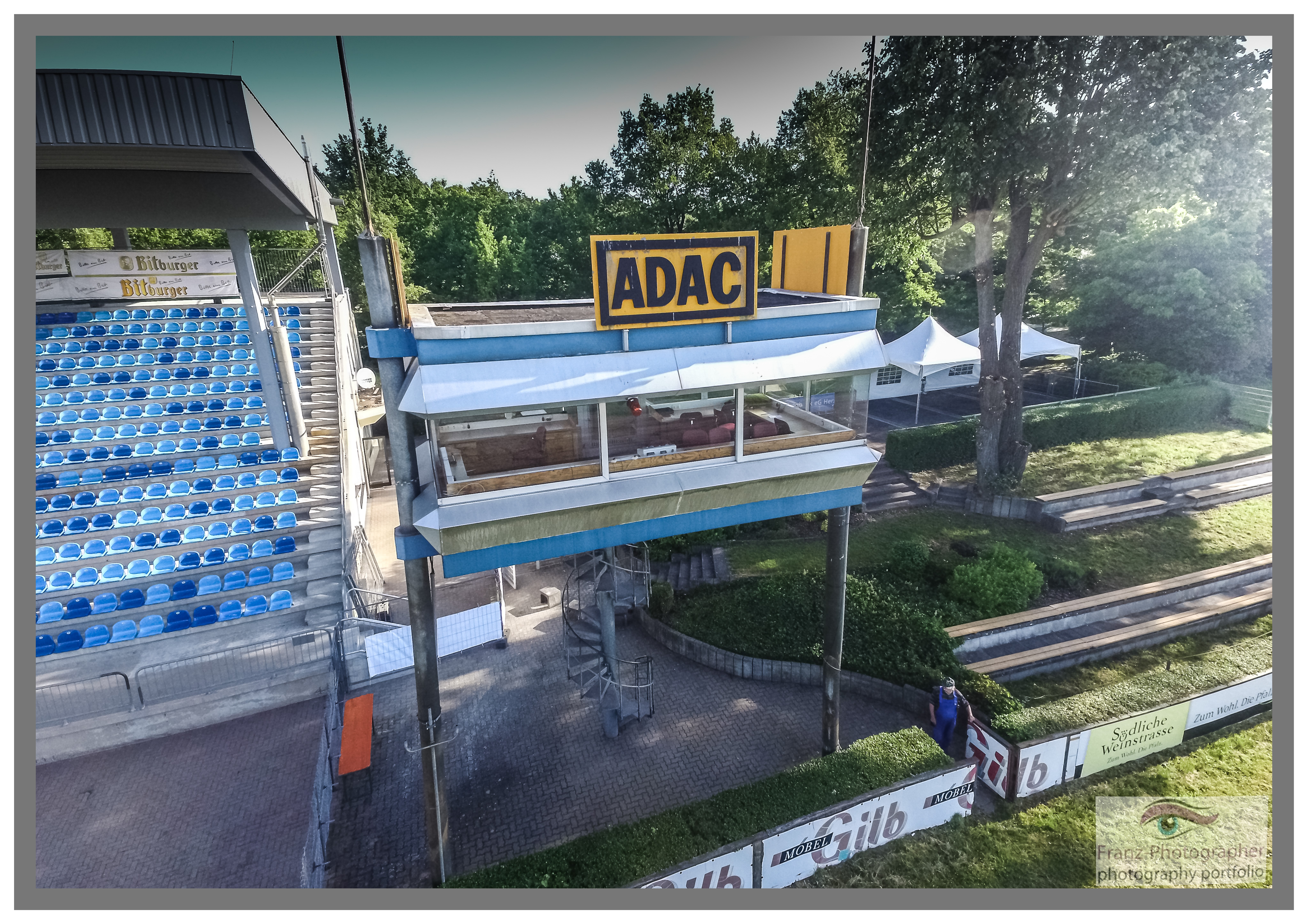 Die Aufnahme zeigt die ursprüngliche 1000 m-Bahn, die durch eine Querspange im Ostkurvenbereich verengt wurde, so daß die heutige 963 m-Bahn mit einer Spitzkurve entstand sowie die Speedwaybahn mit einer Länge von 283 m vor dem Tribünengebäude. Östlich davon sieht man noch die kleine Schüler-Trainingsbahn mit einer Länge von 190 m.